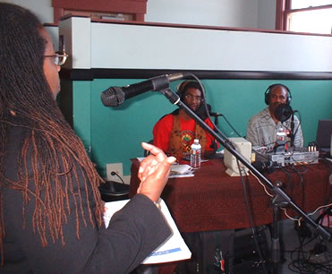Brother Jamaal and Dr. Nathan Rabb field questions and comments from audience members at Los Angeles' AFIBA Center for World No Tobacco Day, May 31, 2003/6243